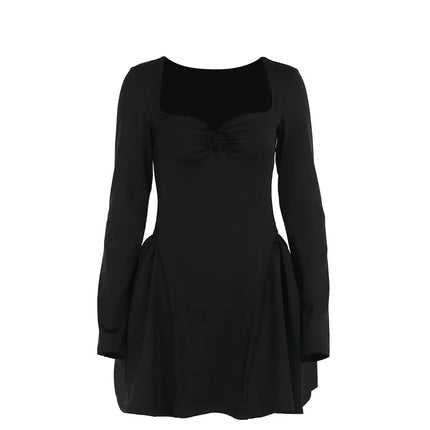 Socialite Style Elegant Slim Fit Fitted Waist Bubble Long Sleeve Dress