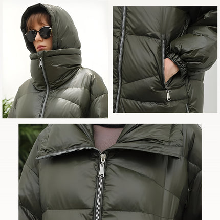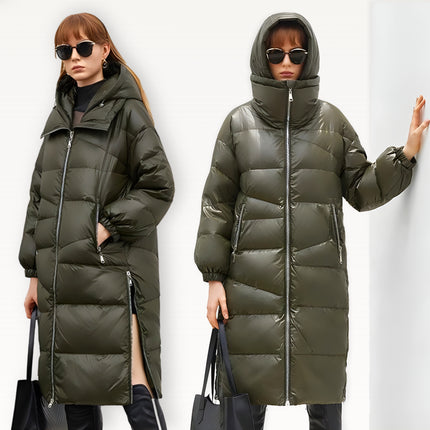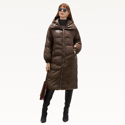 Relaxed padded parka silhouette with an insulated hood and warm stand collar for everyday winter comfort. Designed with an irregular quilting pattern for a modern structured look, plus a side-slit design to improve movement in cold weather. Features elastic windproof cuffs to seal out cold air and a quilted cotton-fill interior for added insulation. Finished with a windproof, water-resistant woven shell and a premium metal full-zip front with storm flap.