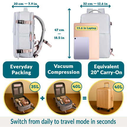 vacuum compression system, it can shrink bulky clothes and make space for everything you need,