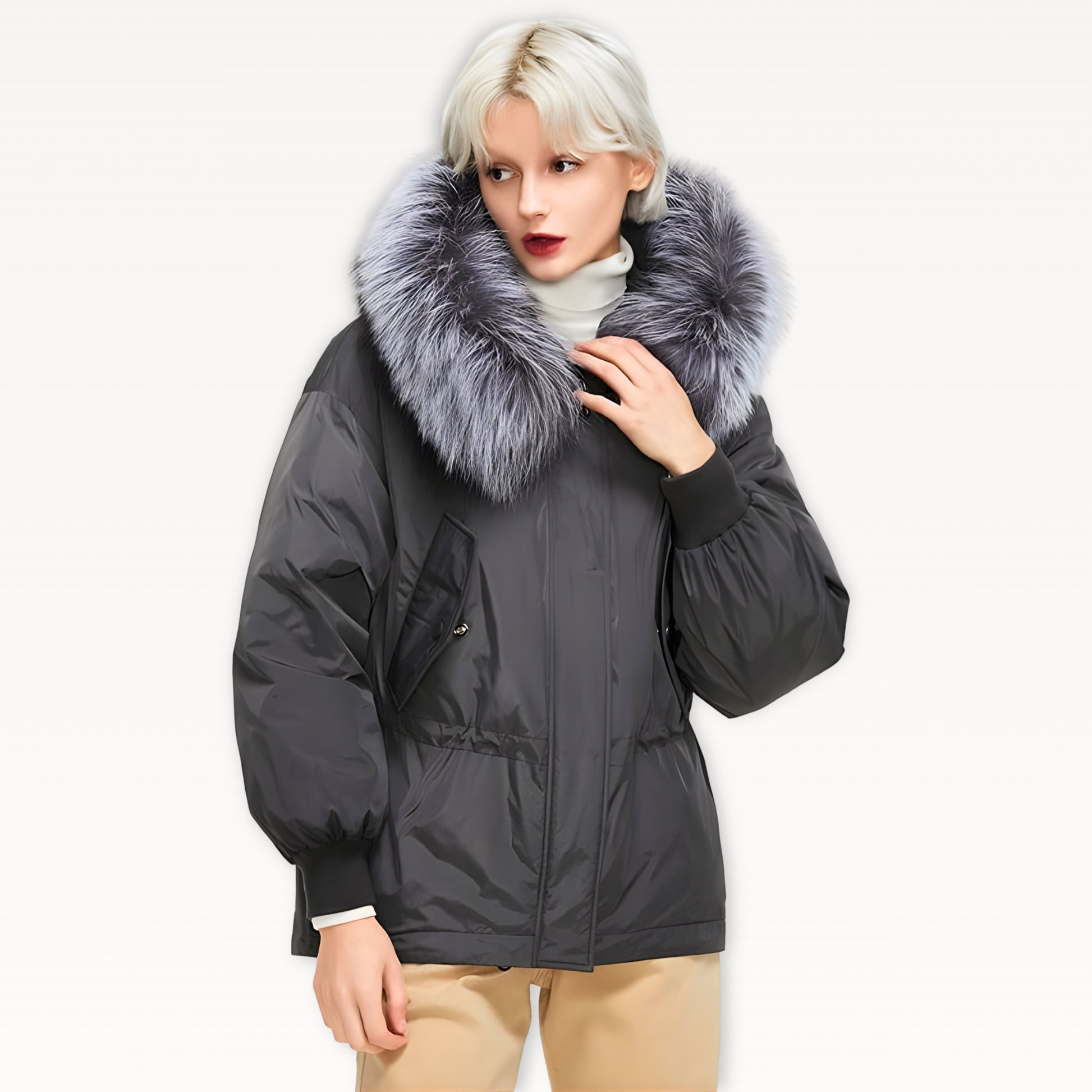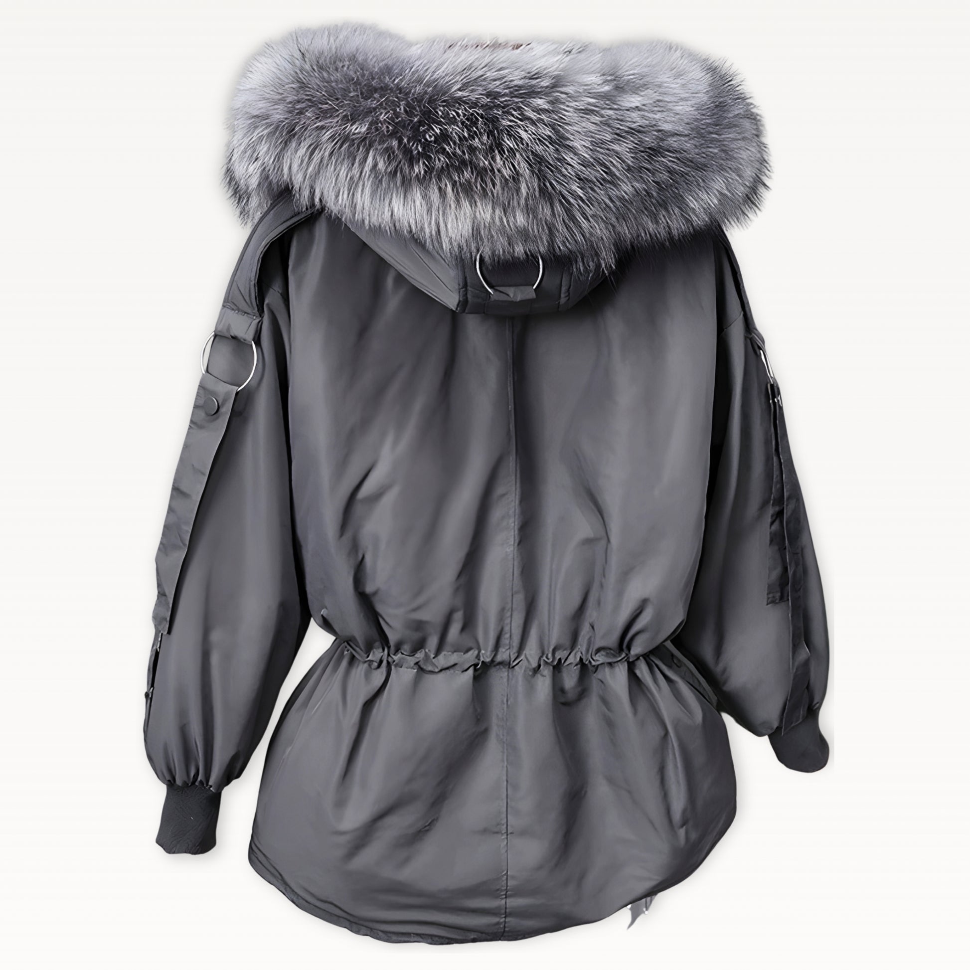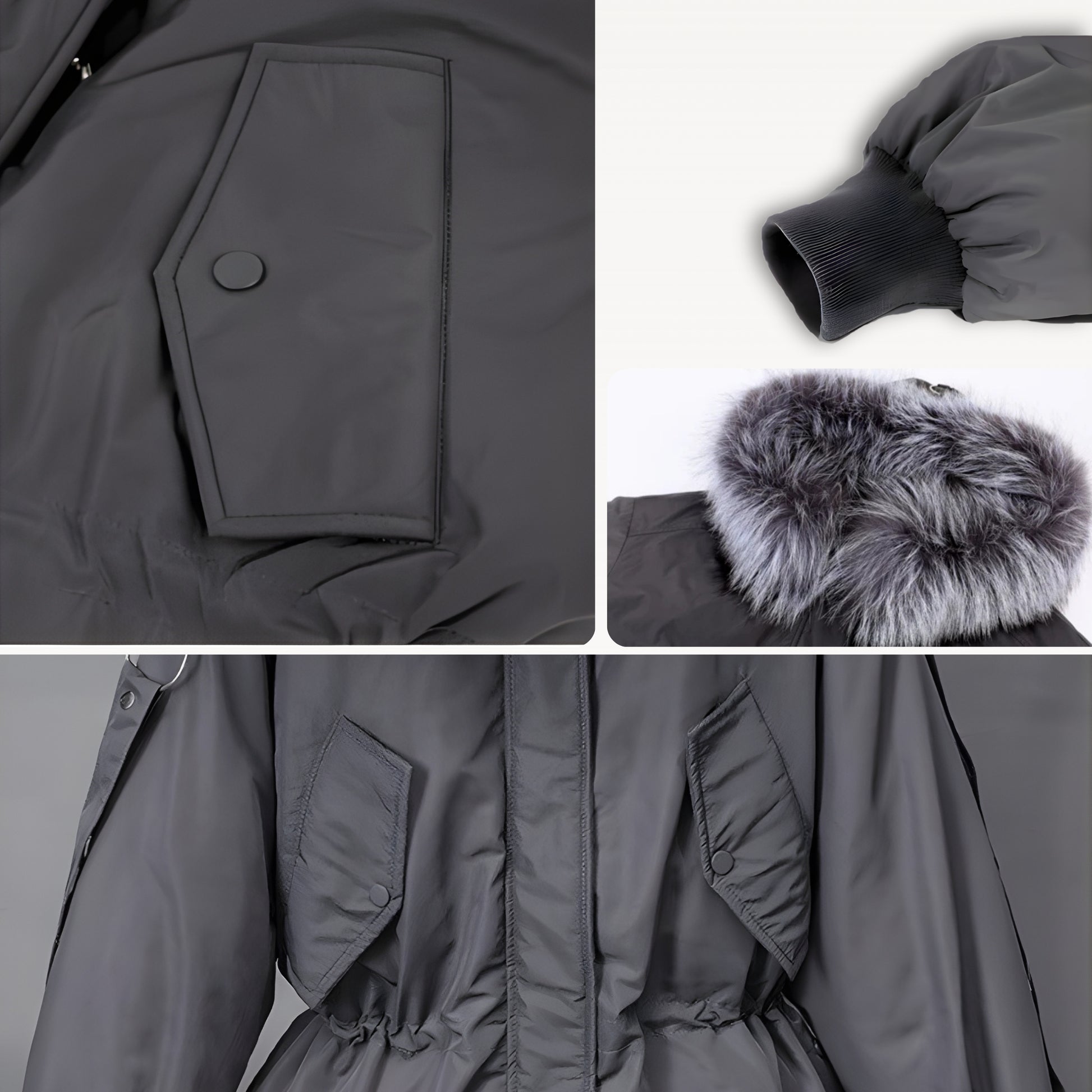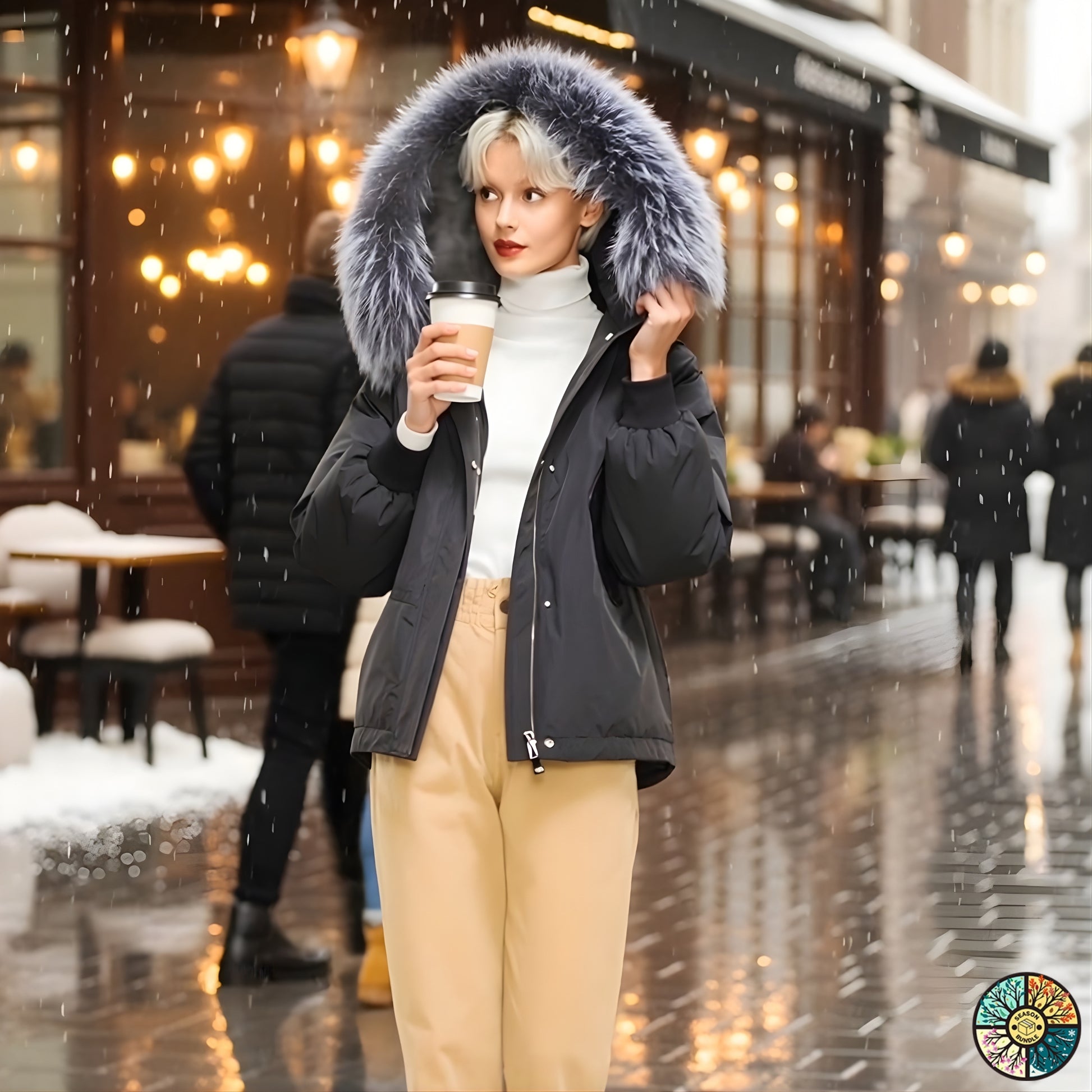 The Faux Fur Hooded Parka Coat (ZR-DR26) is your all-day armor for cold, wet winters. Designed in a premium woven polyester shell with thick quilted lining, it’s packed with over 50% grey duck down fill for serious thermal retention without stiffness.