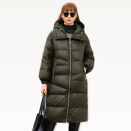 Relaxed padded parka silhouette with an insulated hood and warm stand collar for everyday winter comfort. Designed with an irregular quilting pattern for a modern structured look, plus a side-slit design to improve movement in cold weather. Features elastic windproof cuffs to seal out cold air and a quilted cotton-fill interior for added insulation. Finished with a windproof, water-resistant woven shell and a premium metal full-zip front with storm flap.